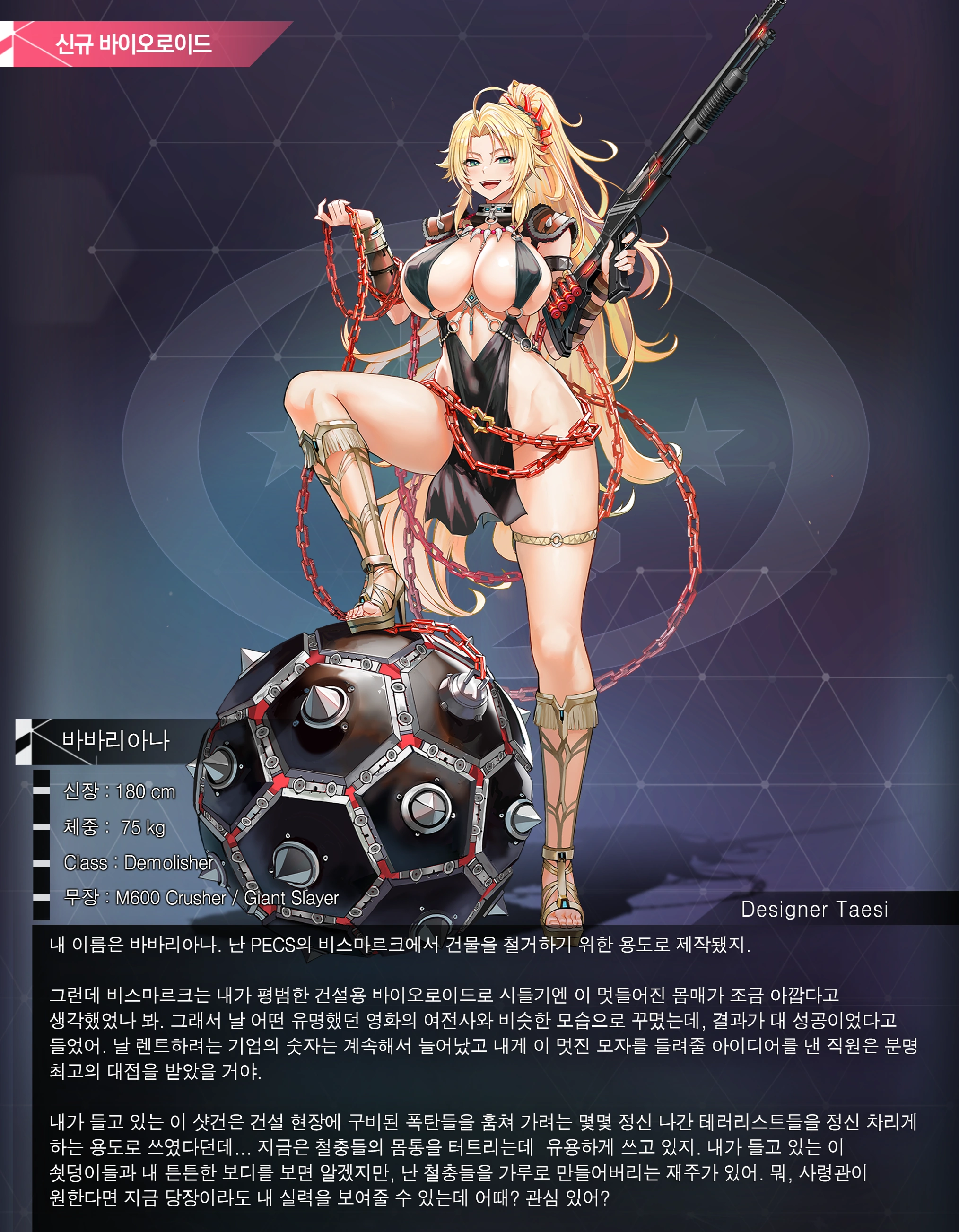 "My name's Barbariana. I was created in Bismarck of PECS for demolition work.